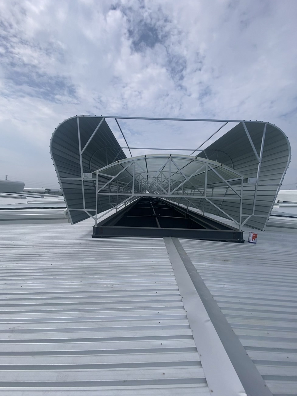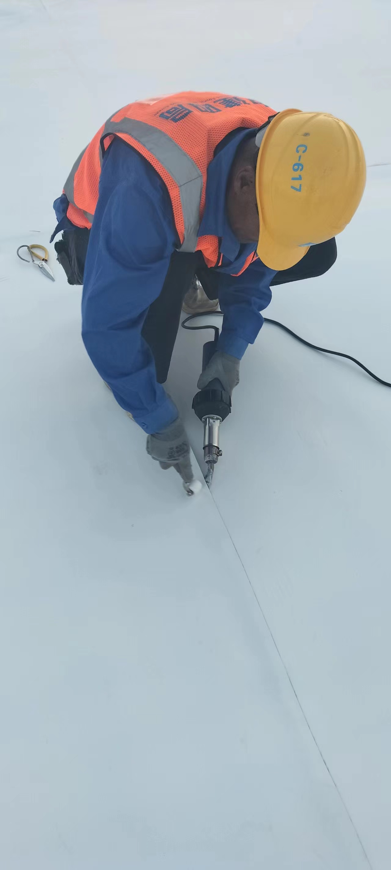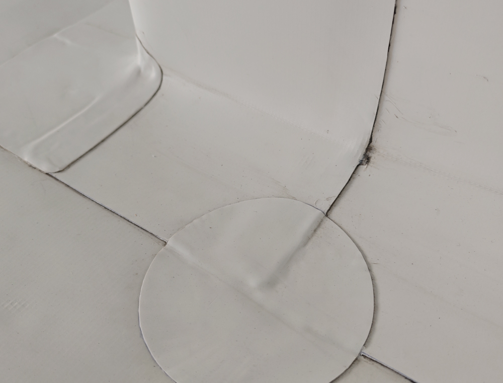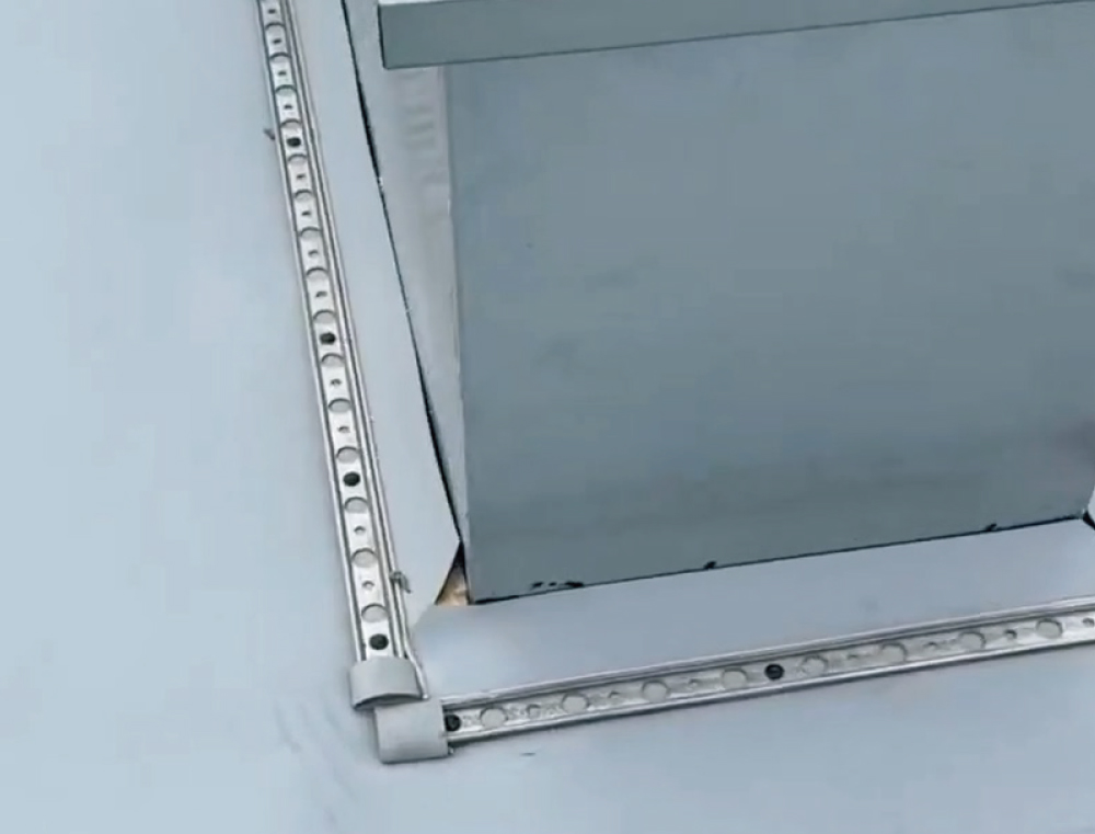 屋面平面周边与立面交接处PTO卷材用通长铁压条固定,立面钢制压条上口用塑料焊绳通长焊接,在平面与立面交接处用150mm宽通长PTO卷材覆盖、接缝与大面卷材焊接严密。根据设计和规范抗风揭要求,在屋面四周和年最大频率风向位置按要求裁取小于TPO幅宽的卷材,加密固定点以满足抗风揭要求。屋面上大于500mm*500mm的穿出构件,其周边应使用压条固定,立面钢制压条上口用塑料焊丝通长焊接,在平面与立面交接处用200mm宽通长PTO卷材覆盖、接缝与大面卷材焊接严密。优先使用阴阳角预制件,也可以采用均质TPO片材按图示形状裁剪,焊枪热熔。阴阳角处增铺卷材附加层,优先使用阴阳角预制件,也可以采用均质TPO片材按图示形状裁剪,焊枪热熔。