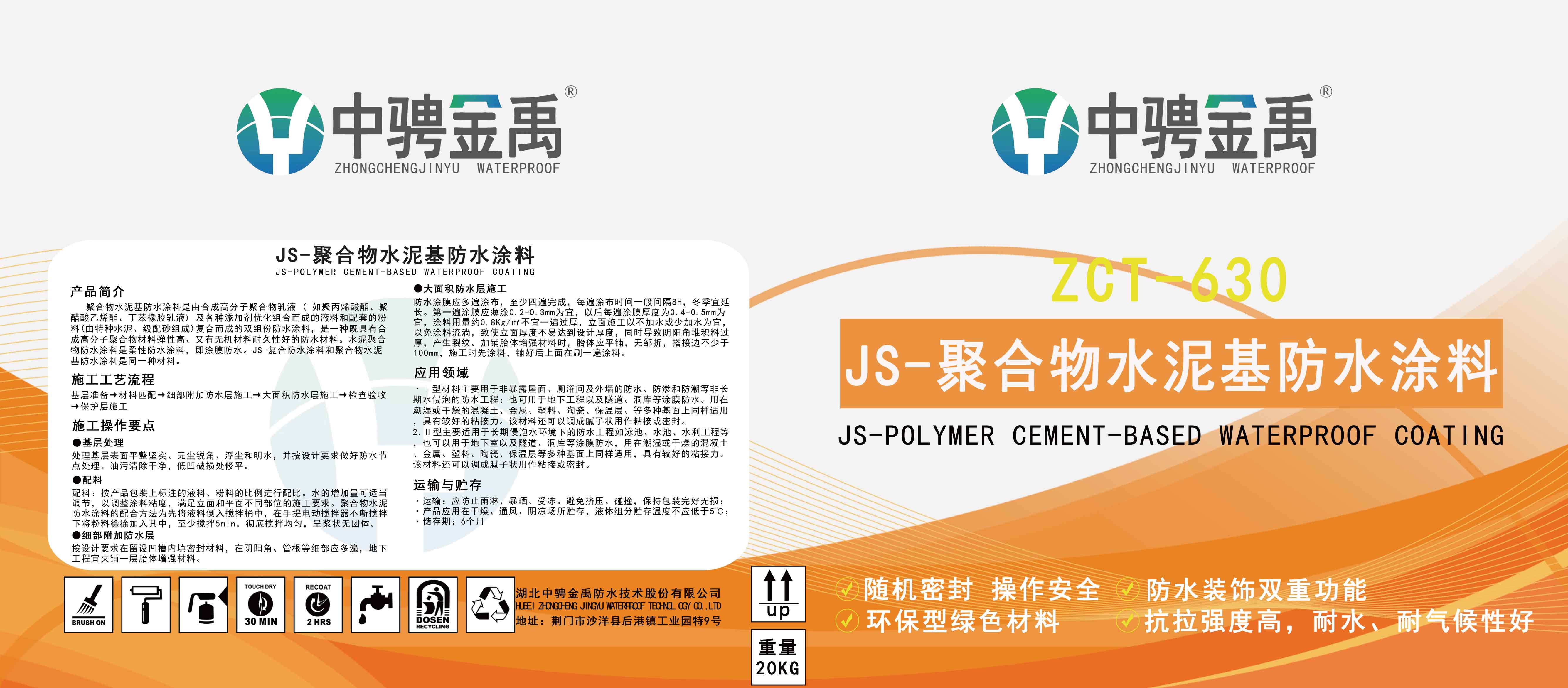 该产品是绿色环保型防水涂料,是由优质高分子聚合物乳液与水泥等无机粉料复合而成的双组分防水涂料,具有有机材料弹性高、 无机材料耐久性好的双重特点,可形成高强坚韧的防水涂膜。