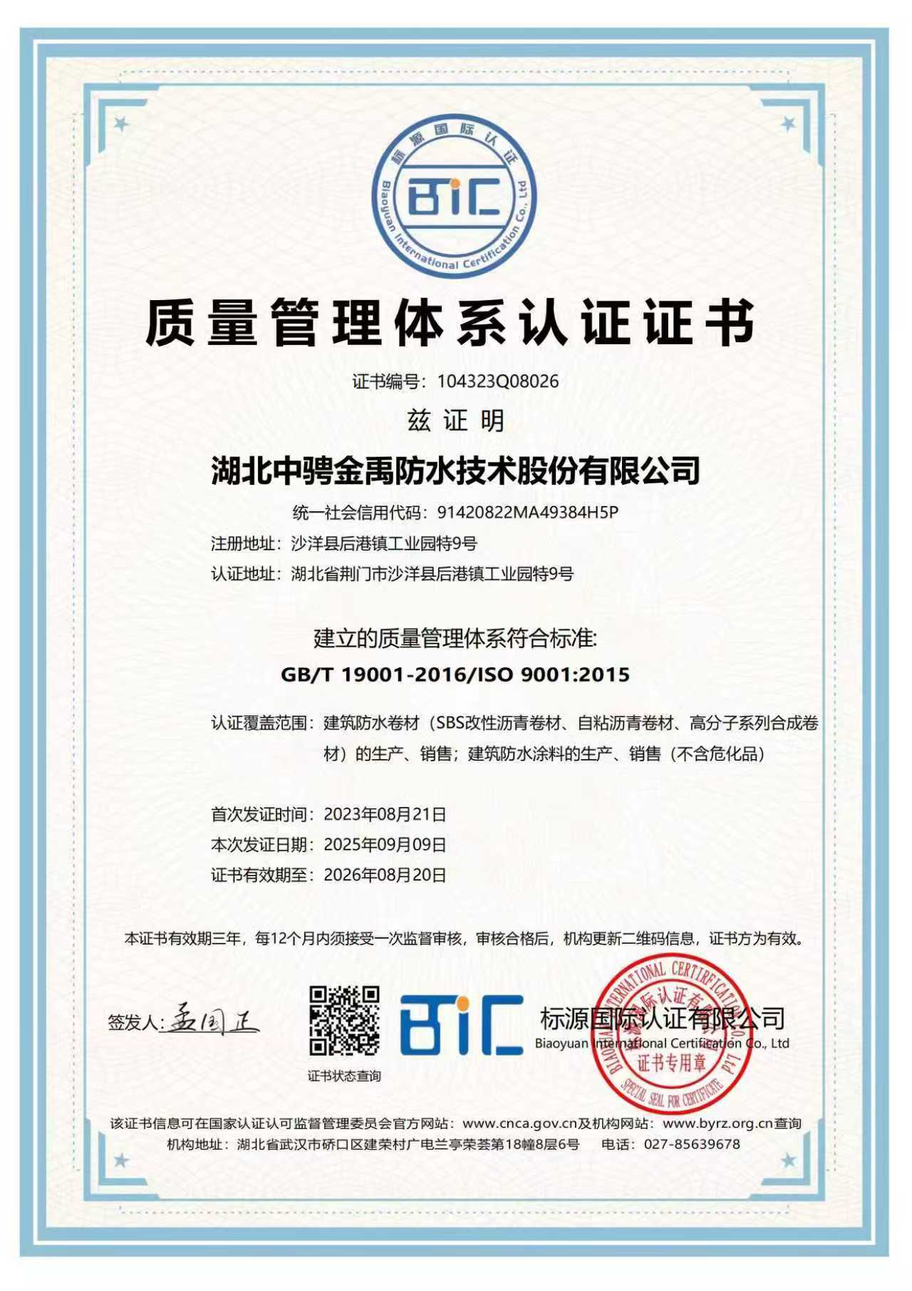 湖北中骋金禹防水技术股份有限公司成立于2018年3月,公司前身是荆州市金禹防水材料有限公司,成立于2004年6月公司追求高质量稳健发展,以主营防水业务为核心延伸上下游及相关产业链,经过深耕市场接近20年后先后建立了荆门高分子合成系列生产基地、涂料系列生产基地、胎基布生产基地、金禹科研中心、防水工程有限公司、武汉运营中心等。